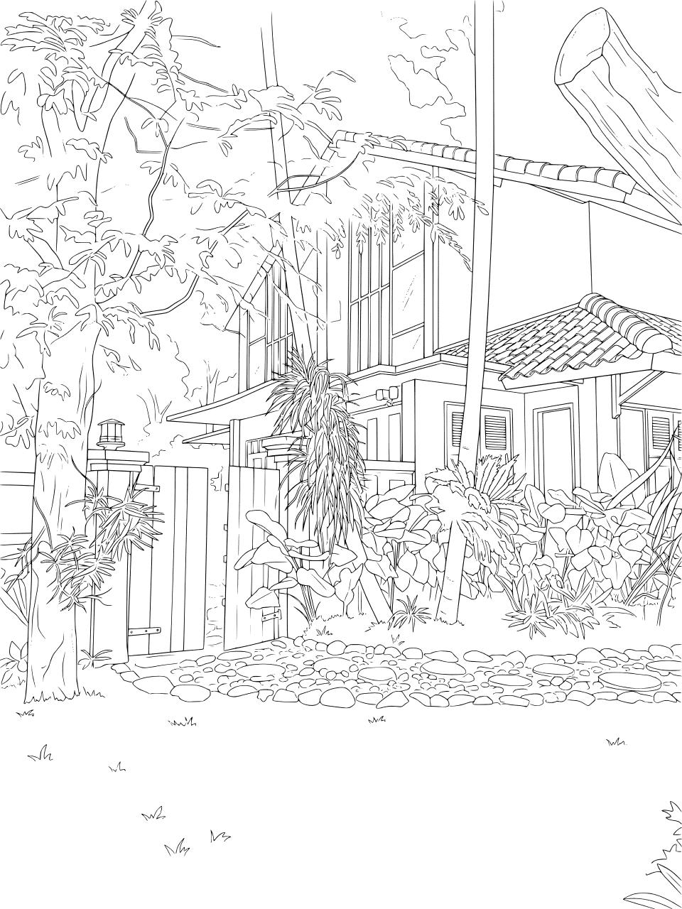 Taman dengan lanskap alami, pohon-pohon rindang, dan pathway batu yang menciptakan suasana hangat dan organik. Ideal untuk natural light photography dan gaya casual prewedding.